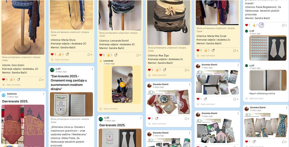 Završna virtualna skupna izložbaučeničkih radova predstavljena je 18. listopada 2025.i javno je dostupnau Školi primijenjene umjetnosti i dizajna te u virtualnoj galeriji na priloženoj poveznici. https://padlet.com/s_b2/dan-kravate-2025-ornament-mog-zavi-aja-u-suvremenom-modnom-d-qlncb29f2vxaeyj3